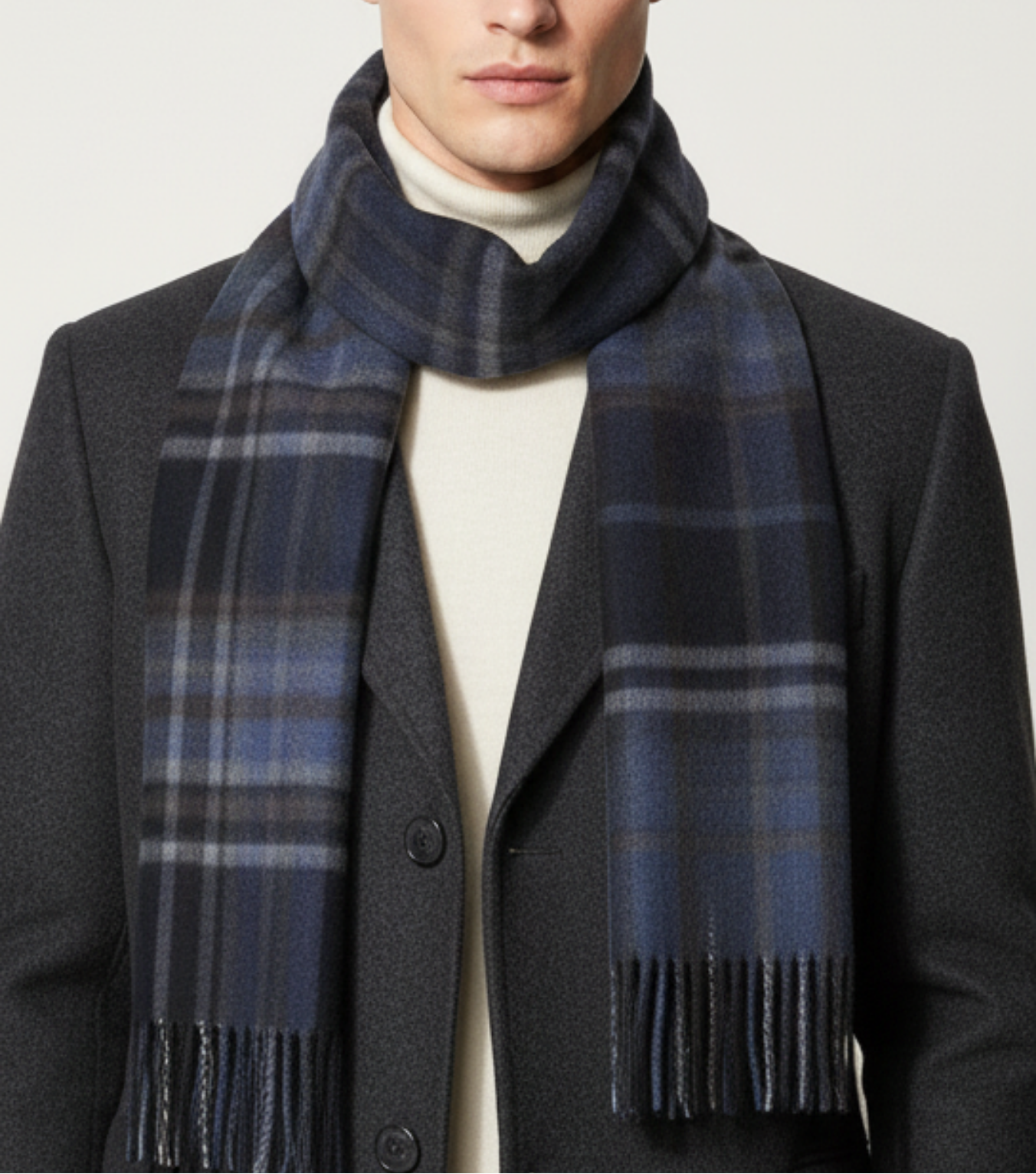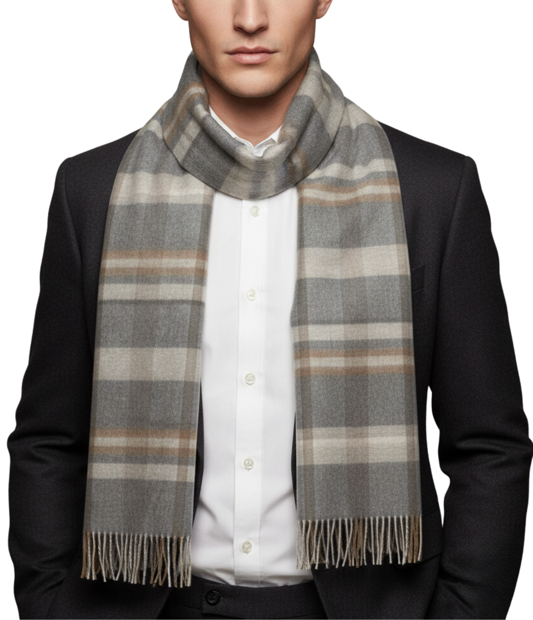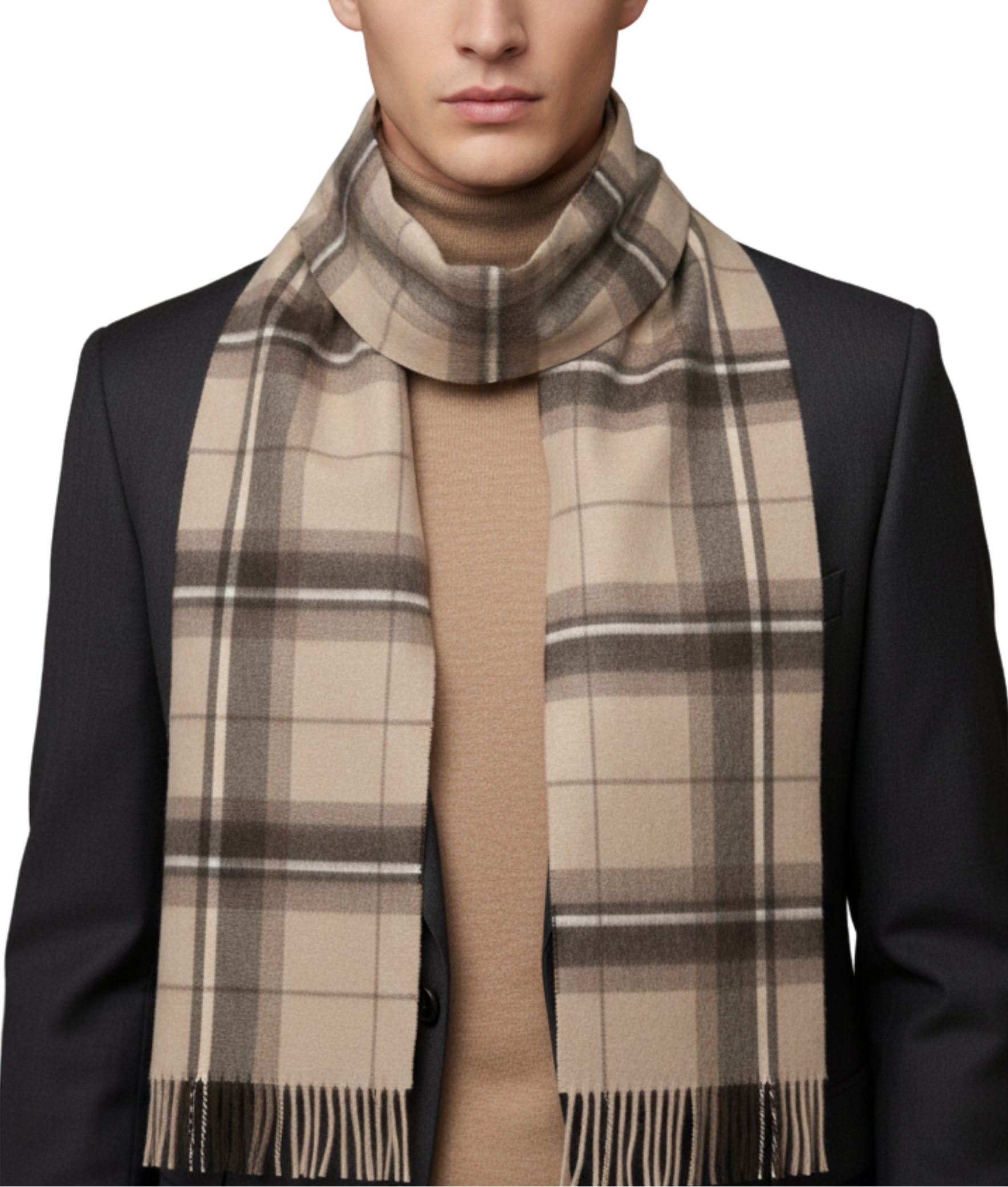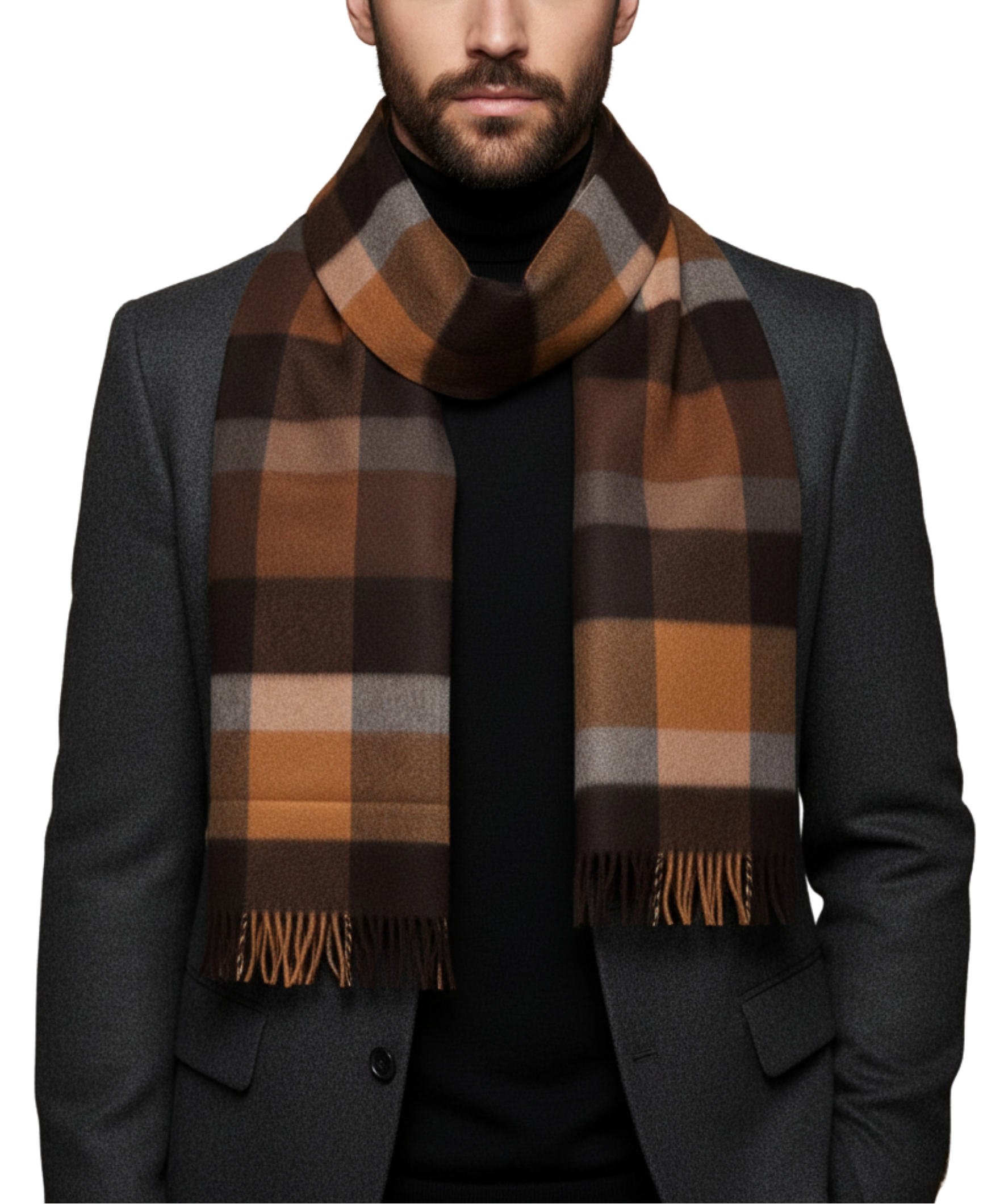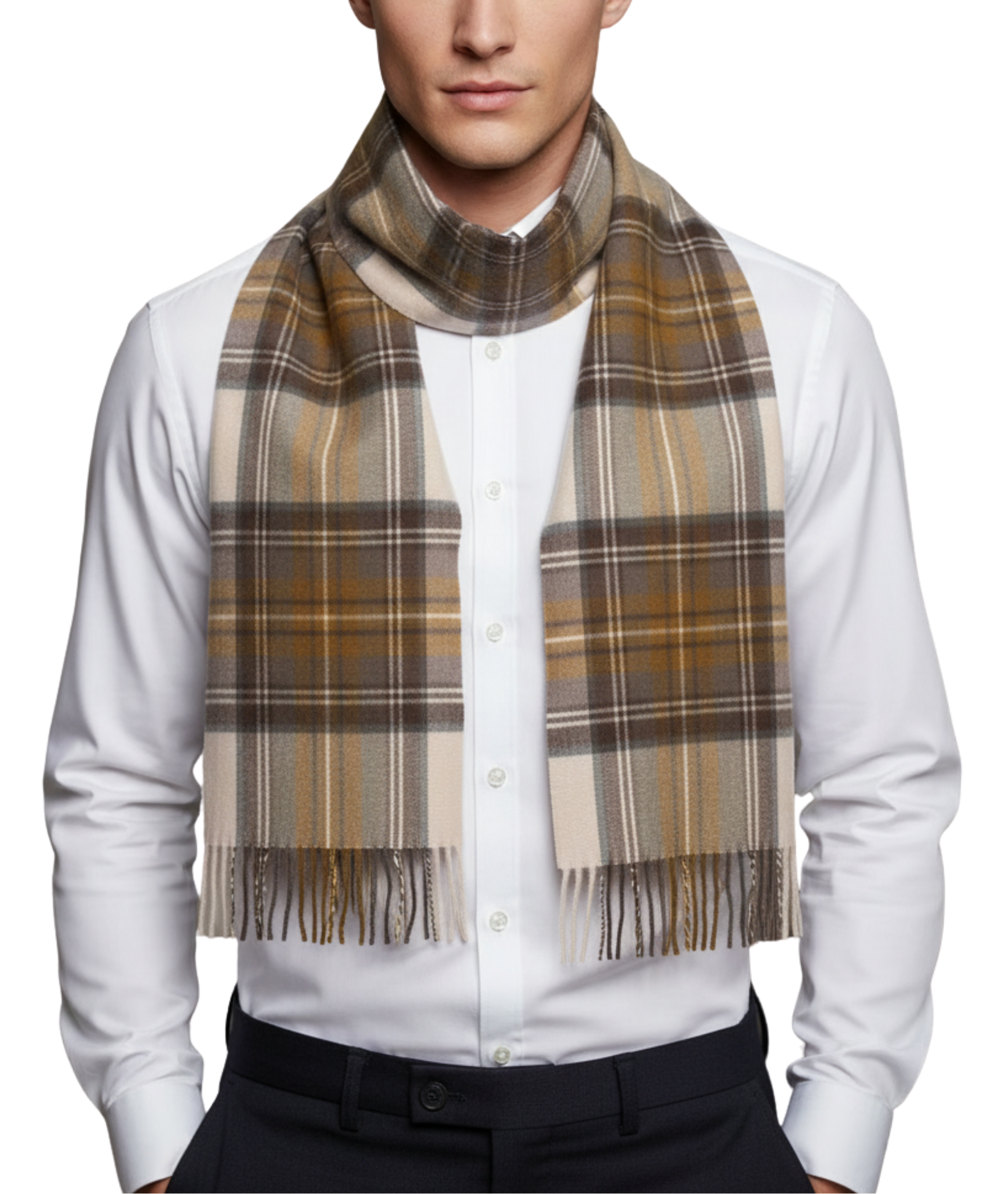 Tovaglia Mens Plaid Cashmere Fringe Scarf