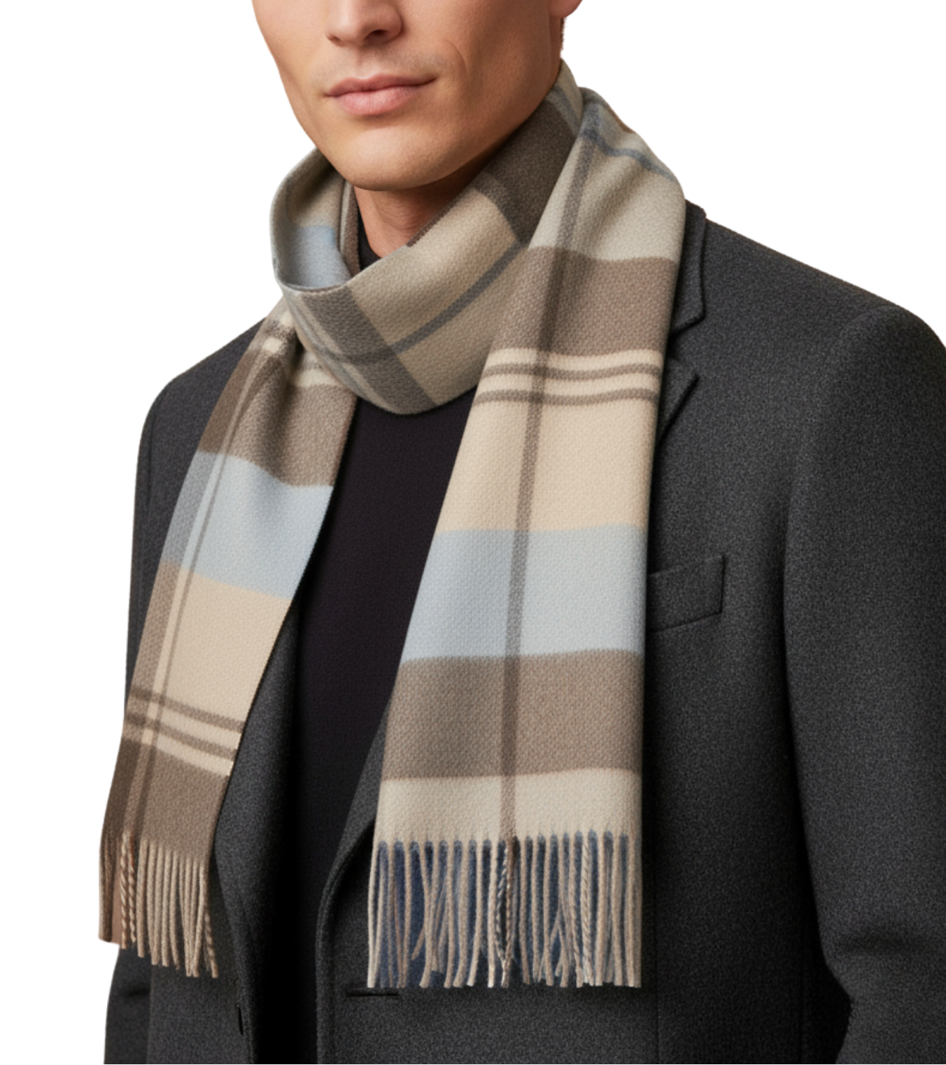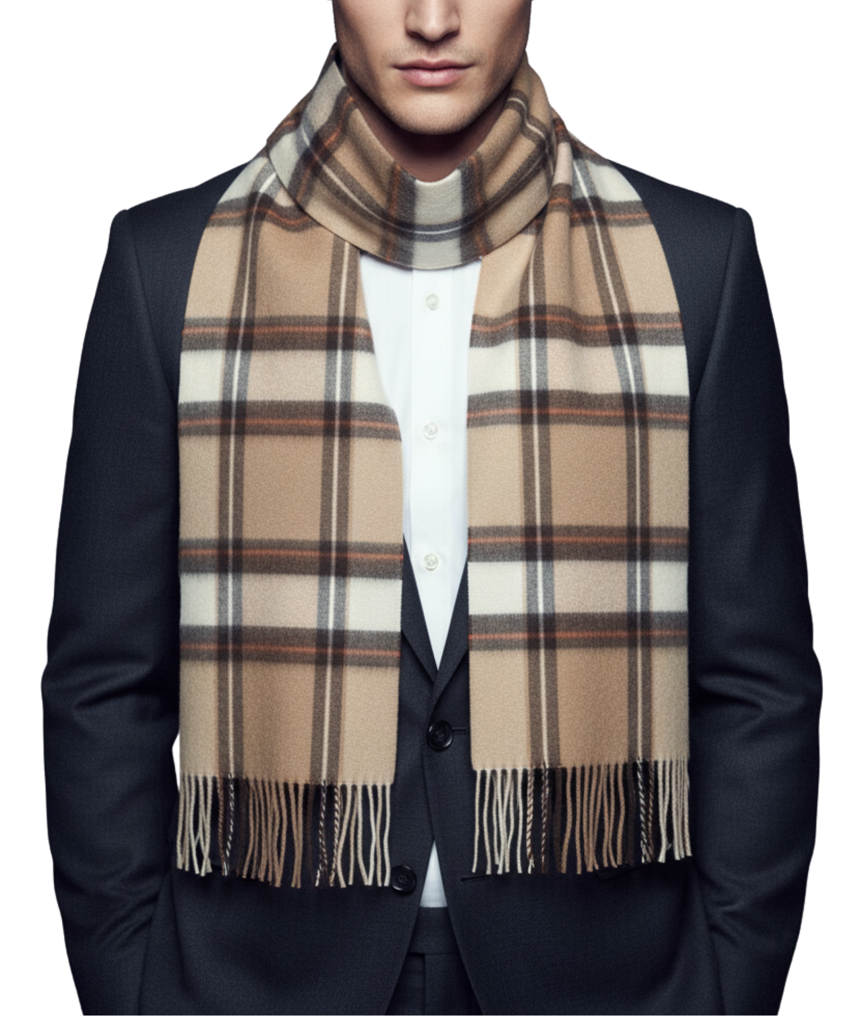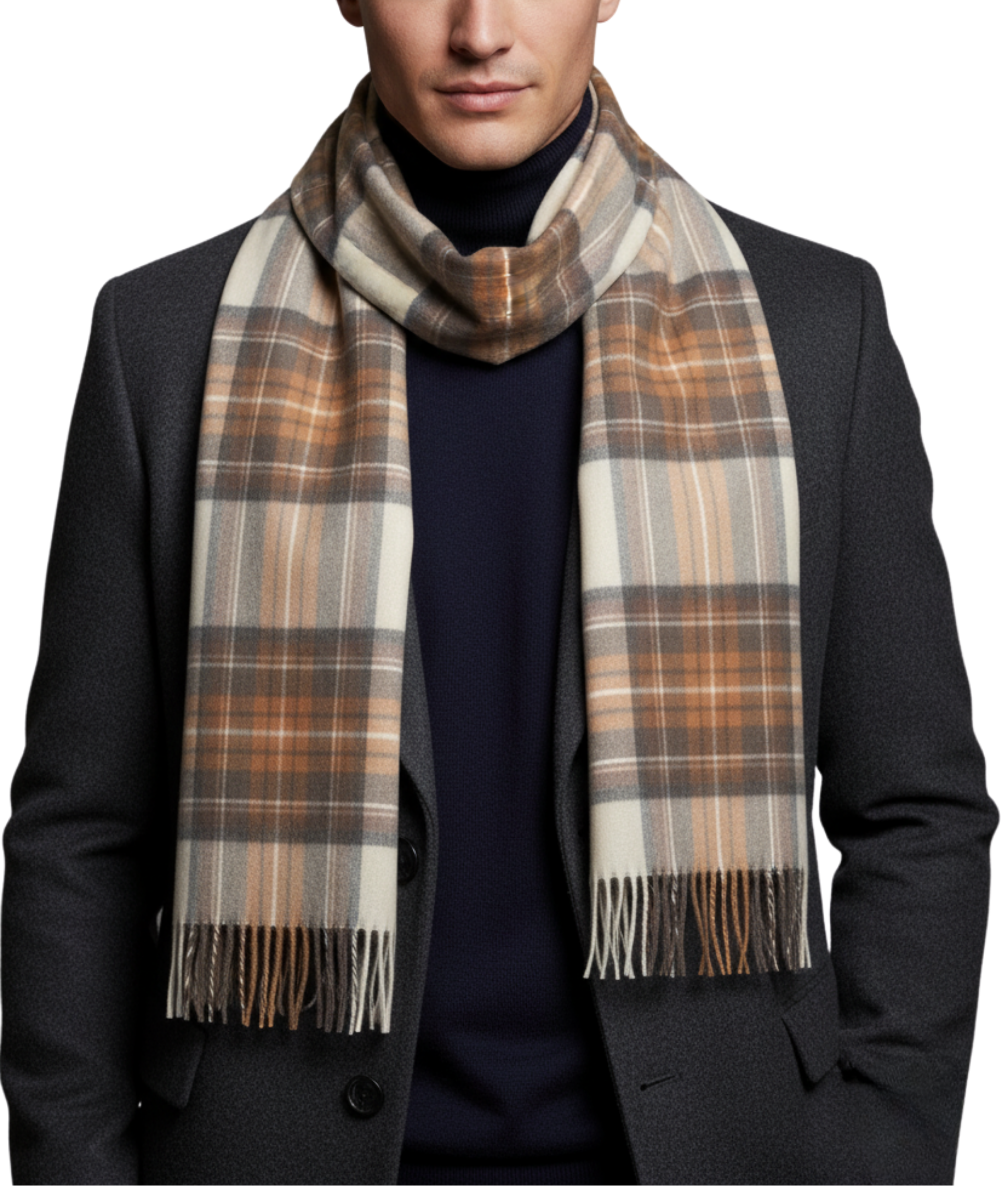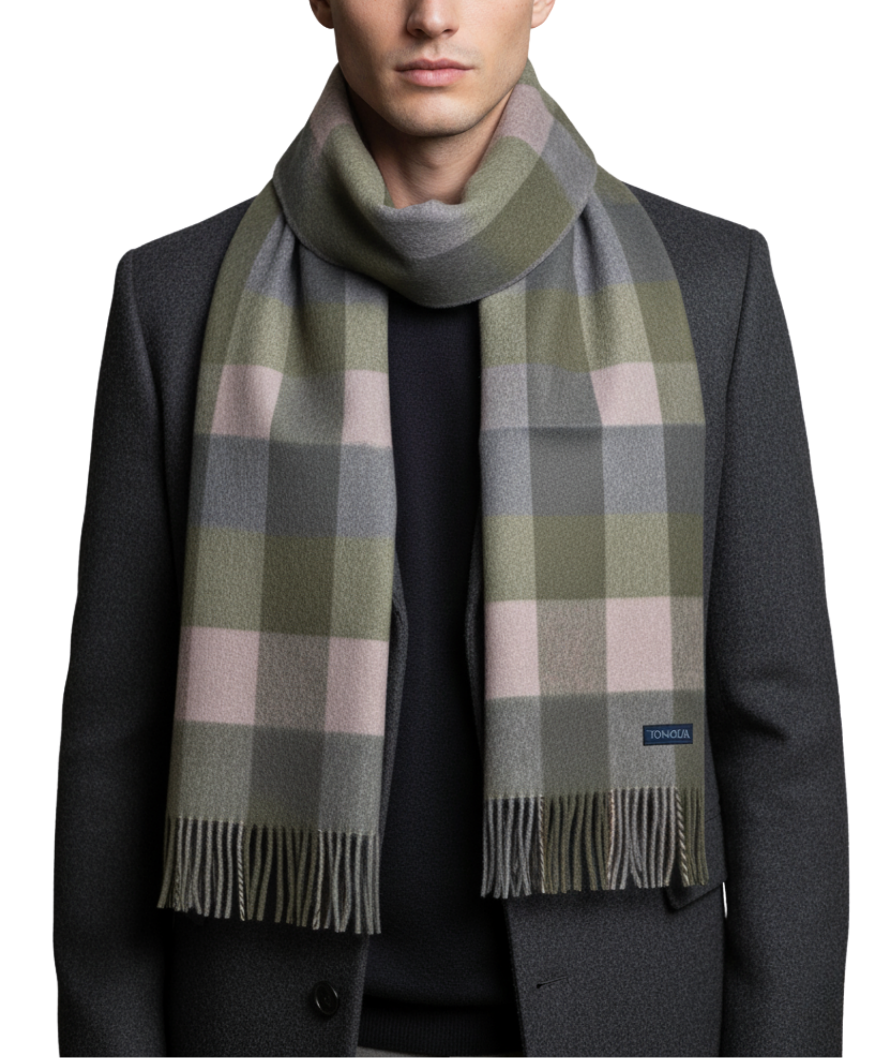 Tovaglia Mens Plaid Cashmere Fringe Scarf