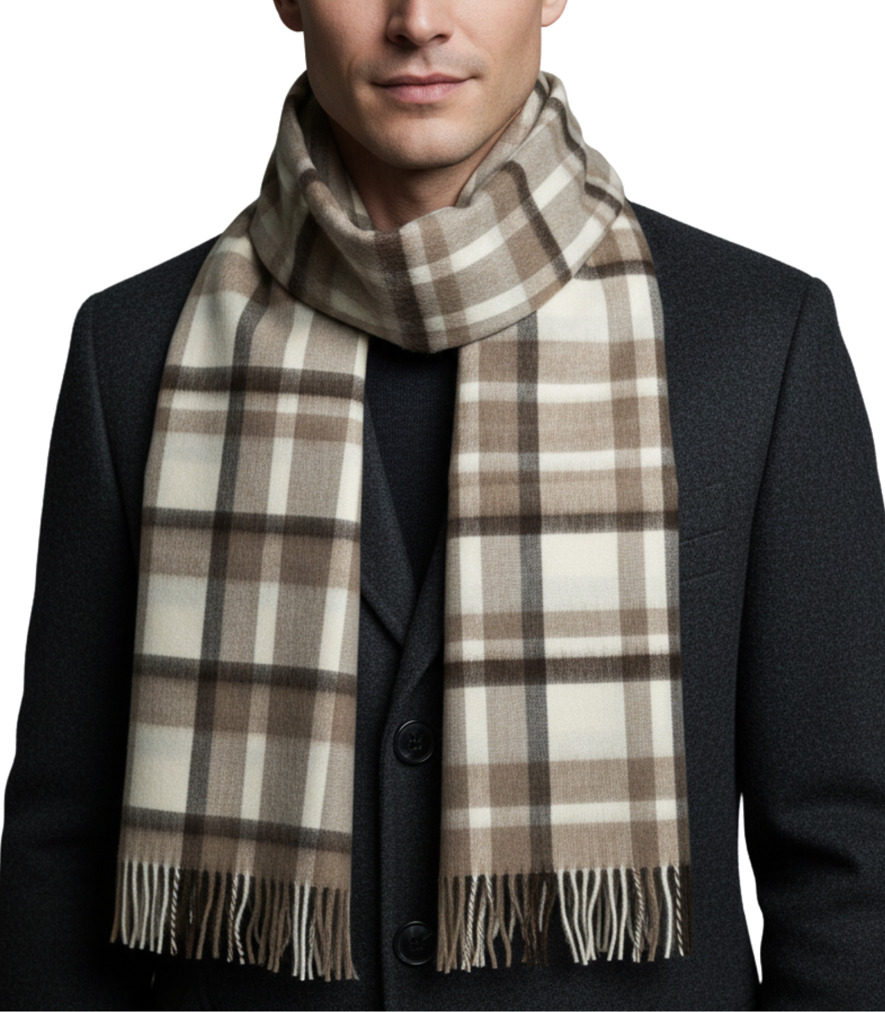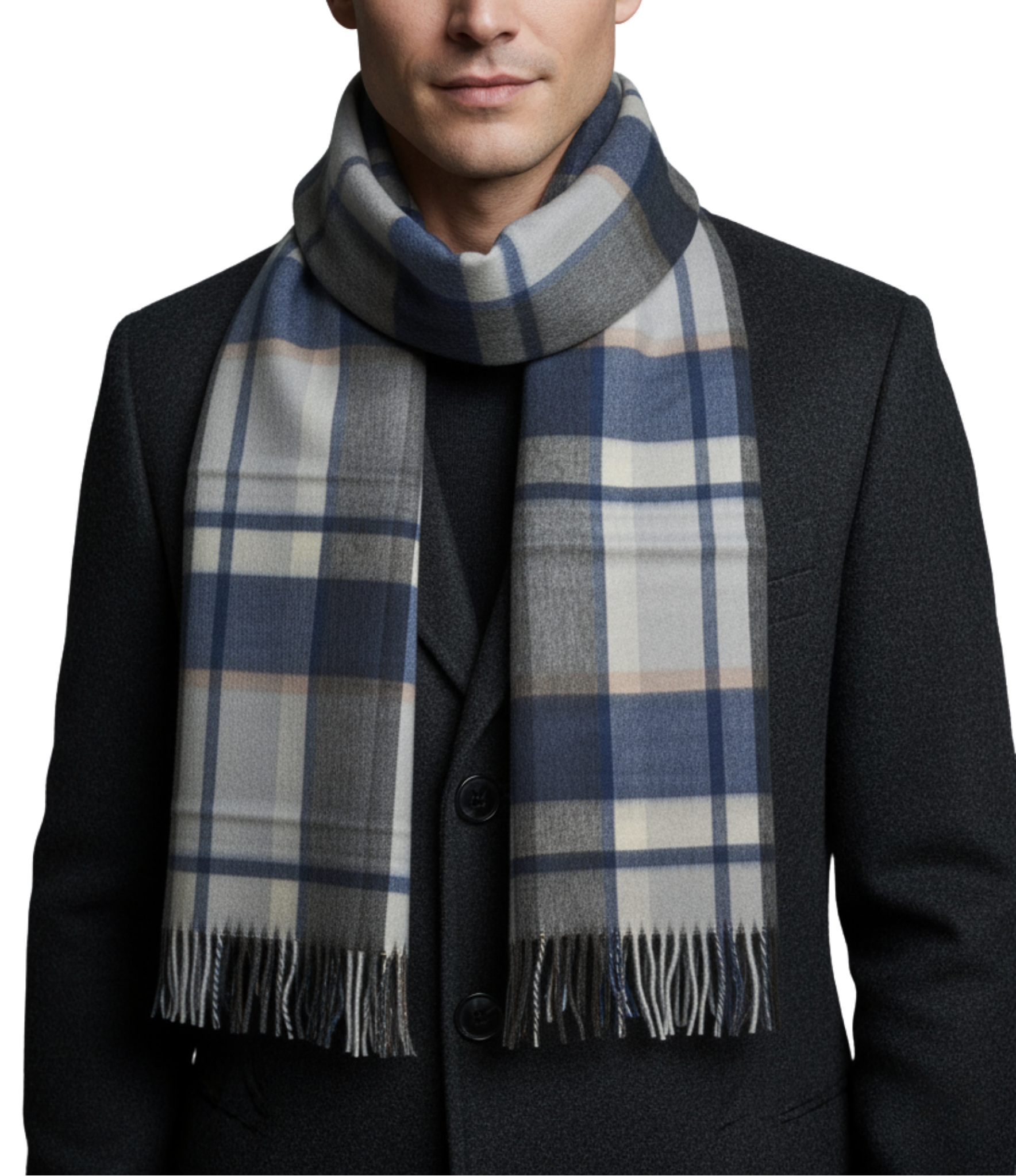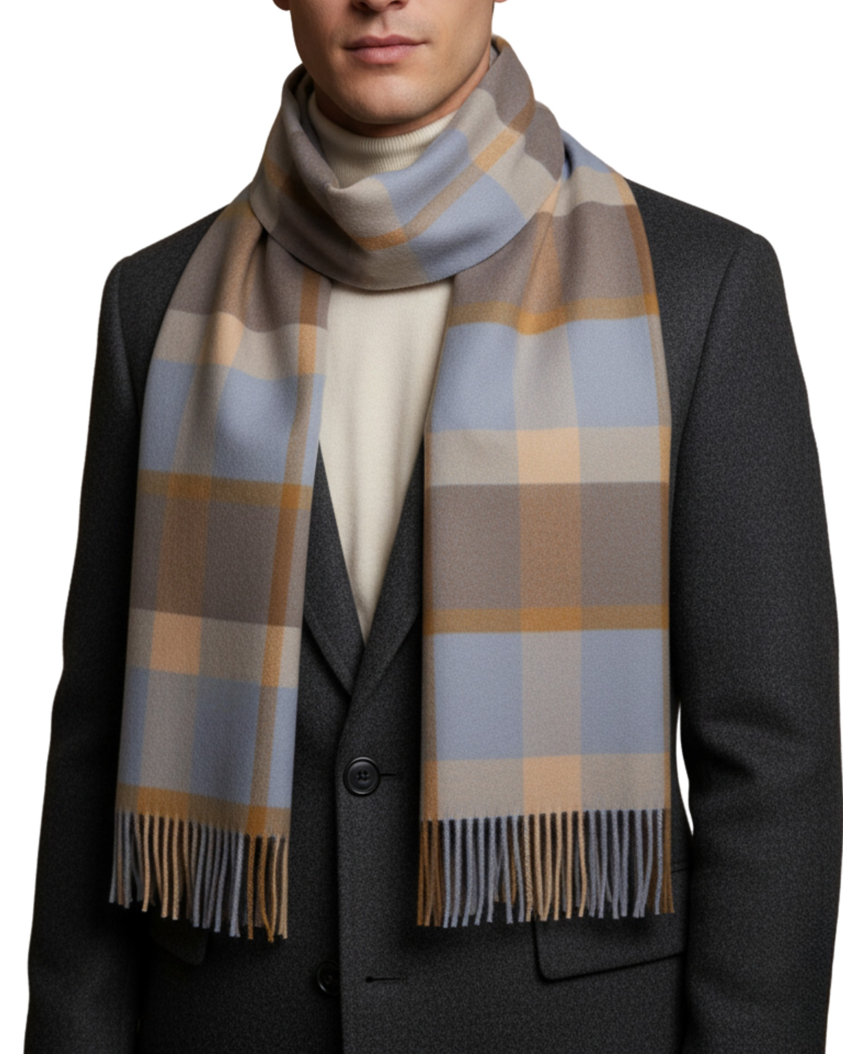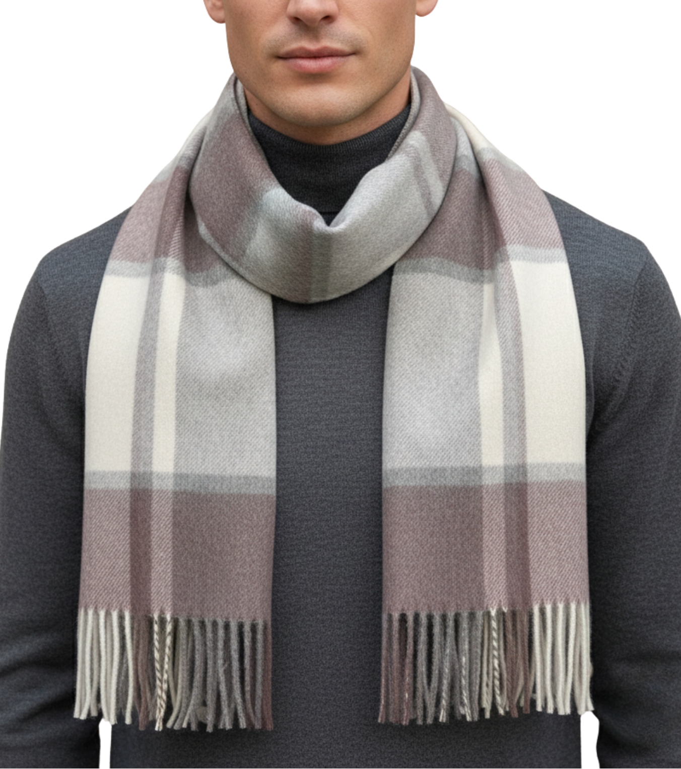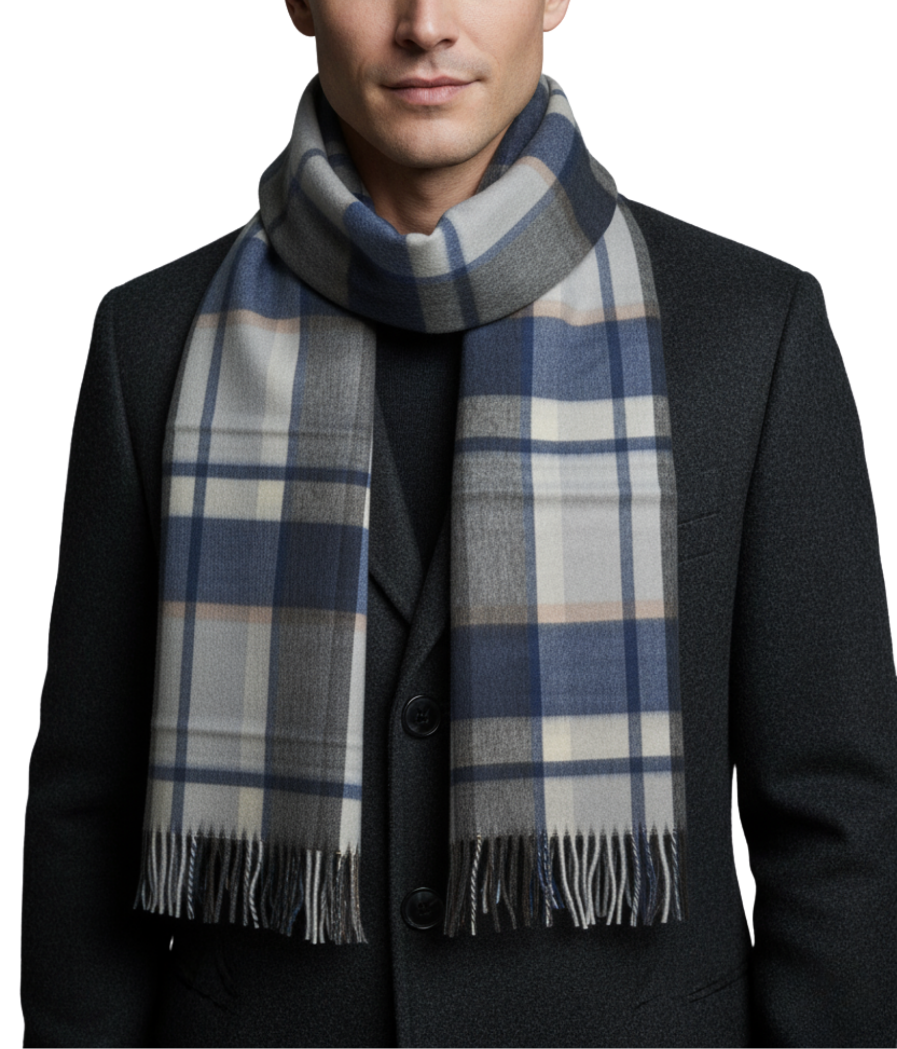 Tovaglia Mens Plaid Cashmere Fringe Scarf