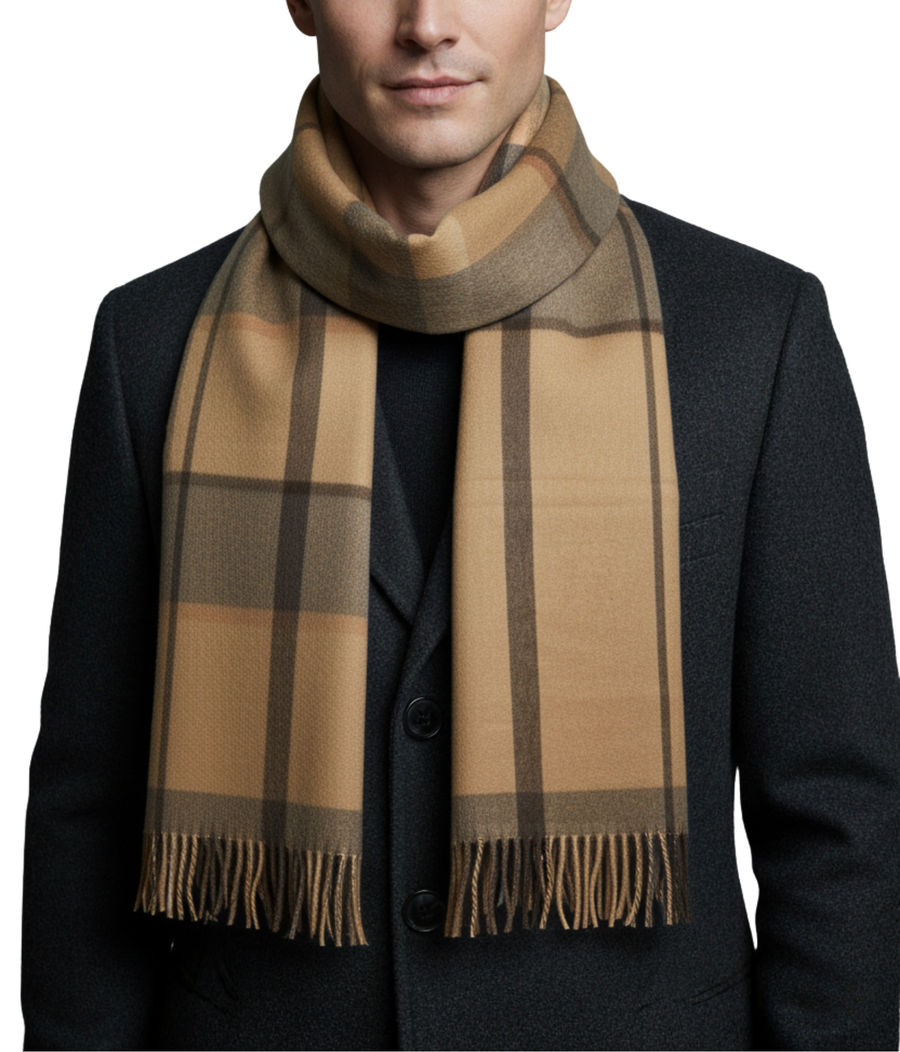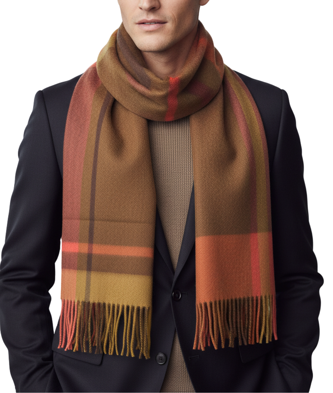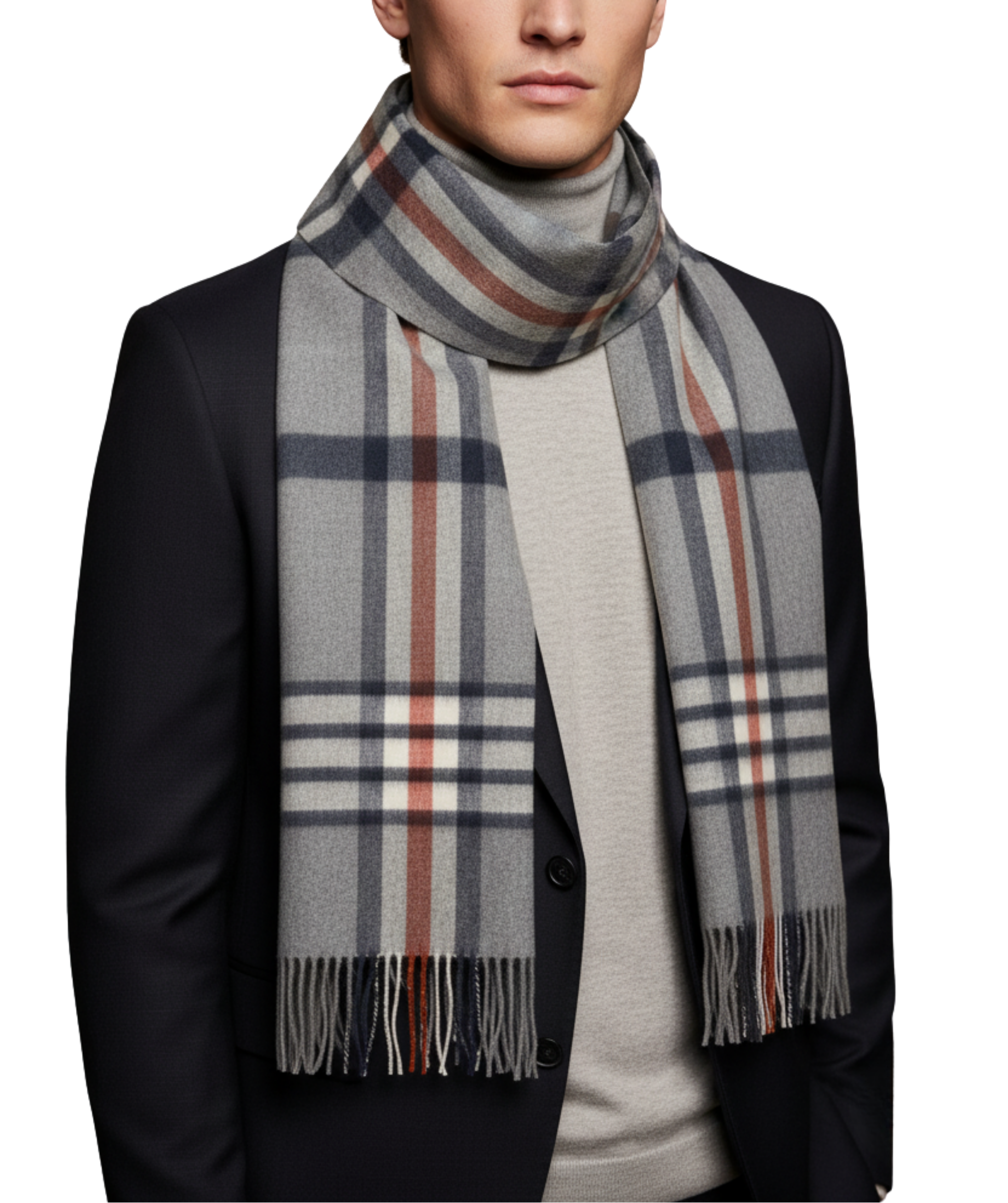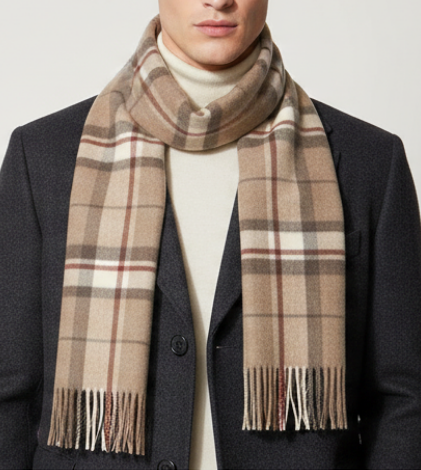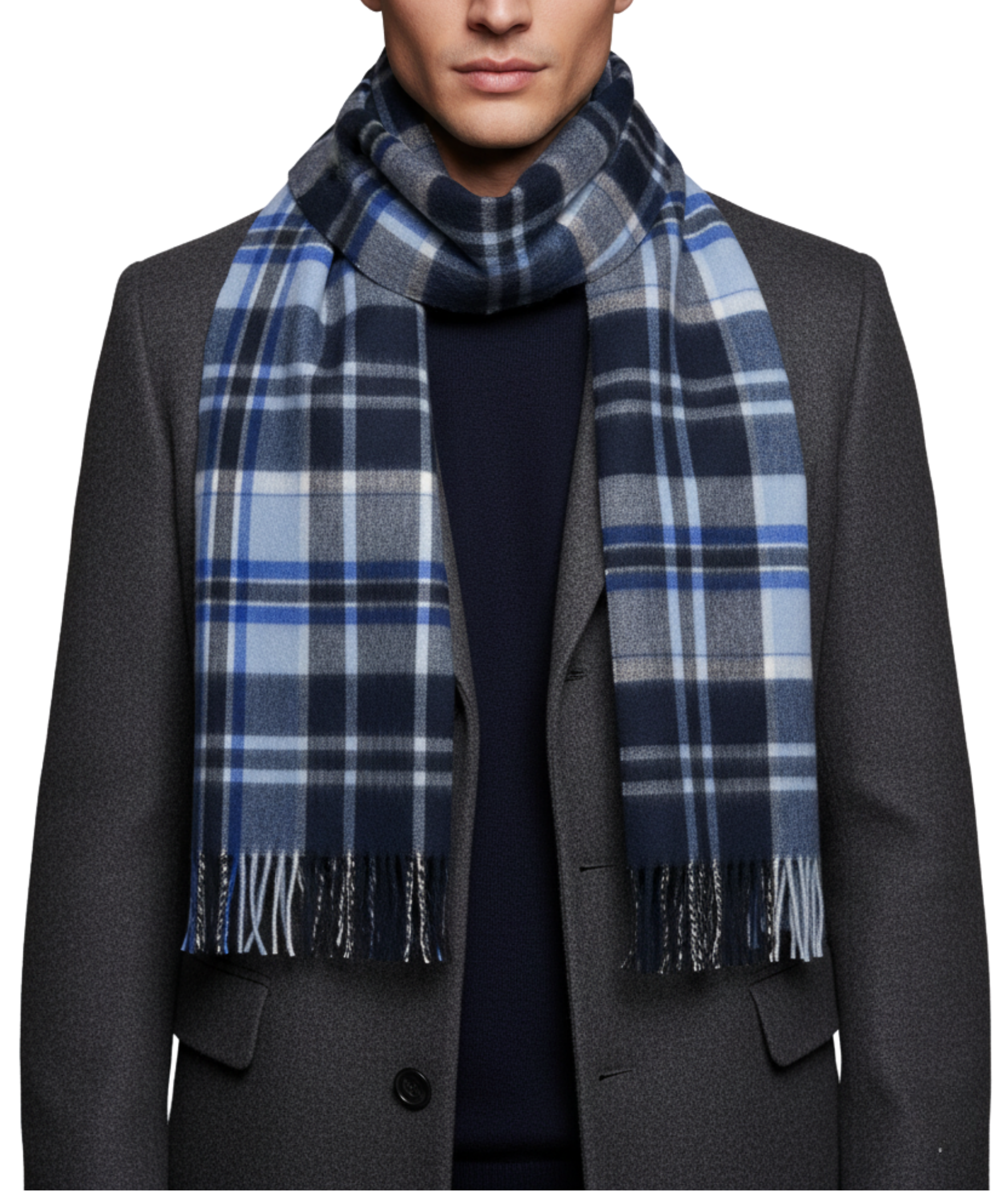 Tovaglia Mens Plaid Cashmere Fringe Scarf