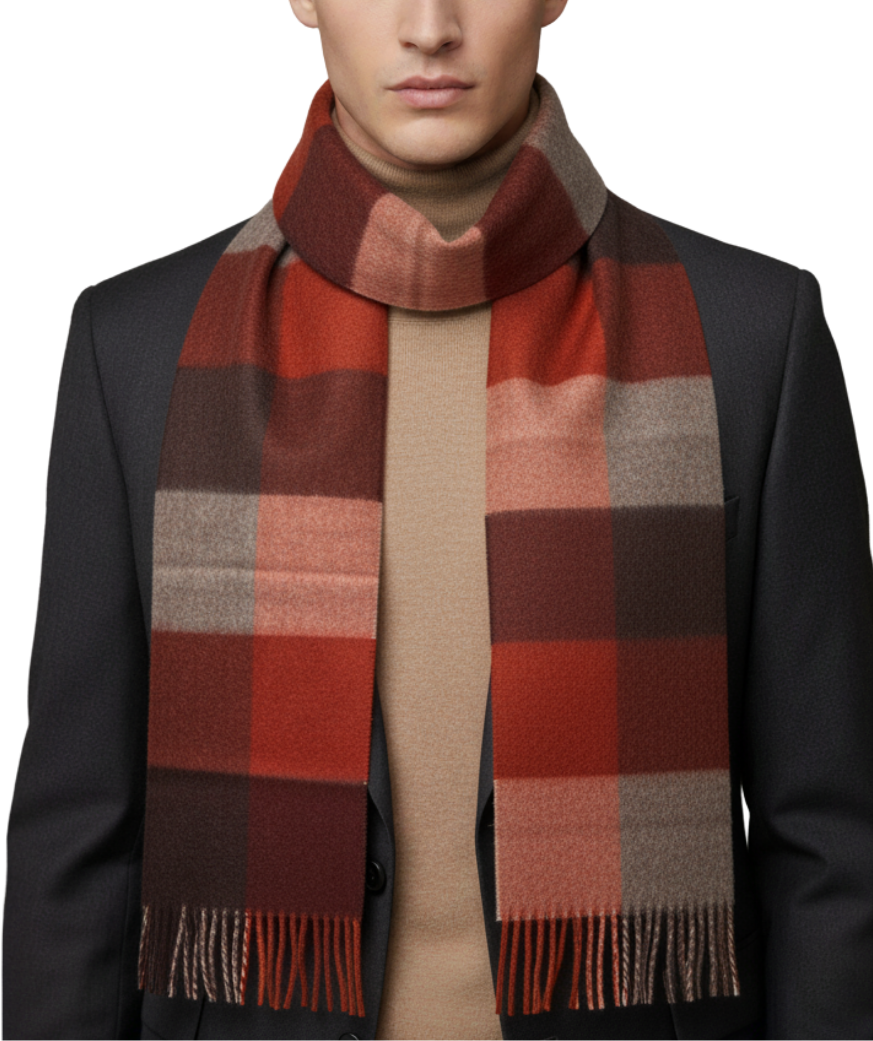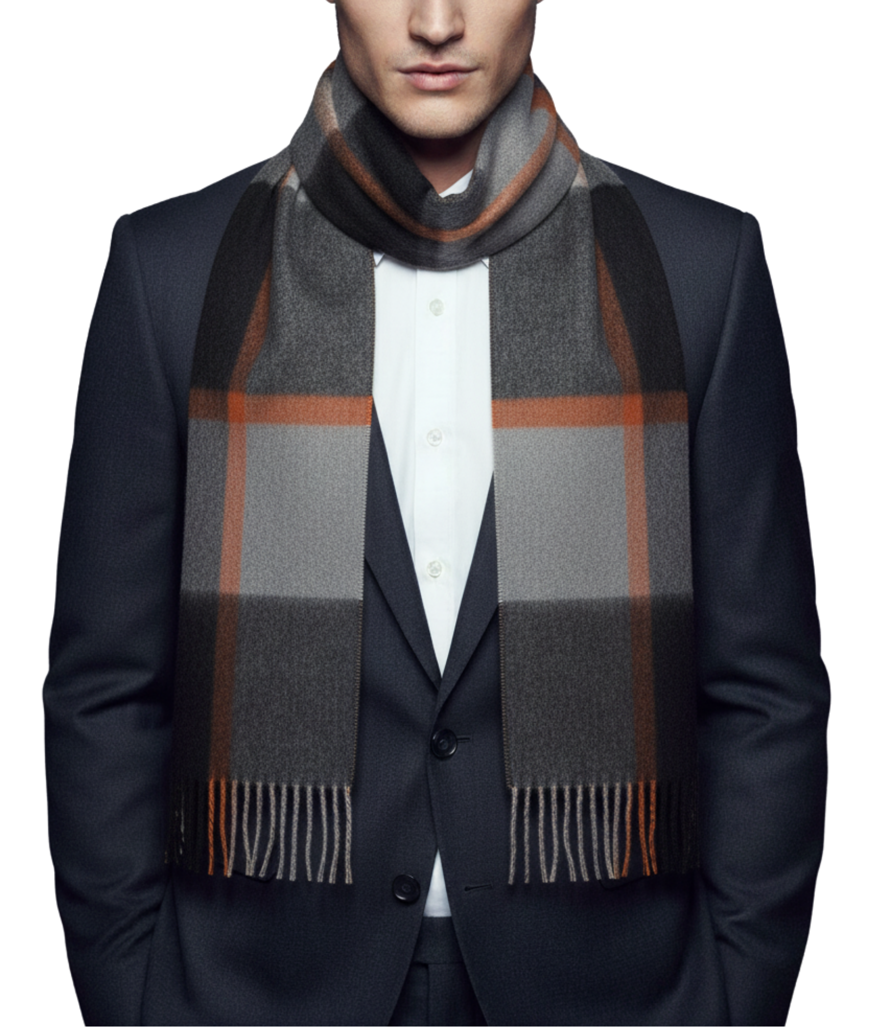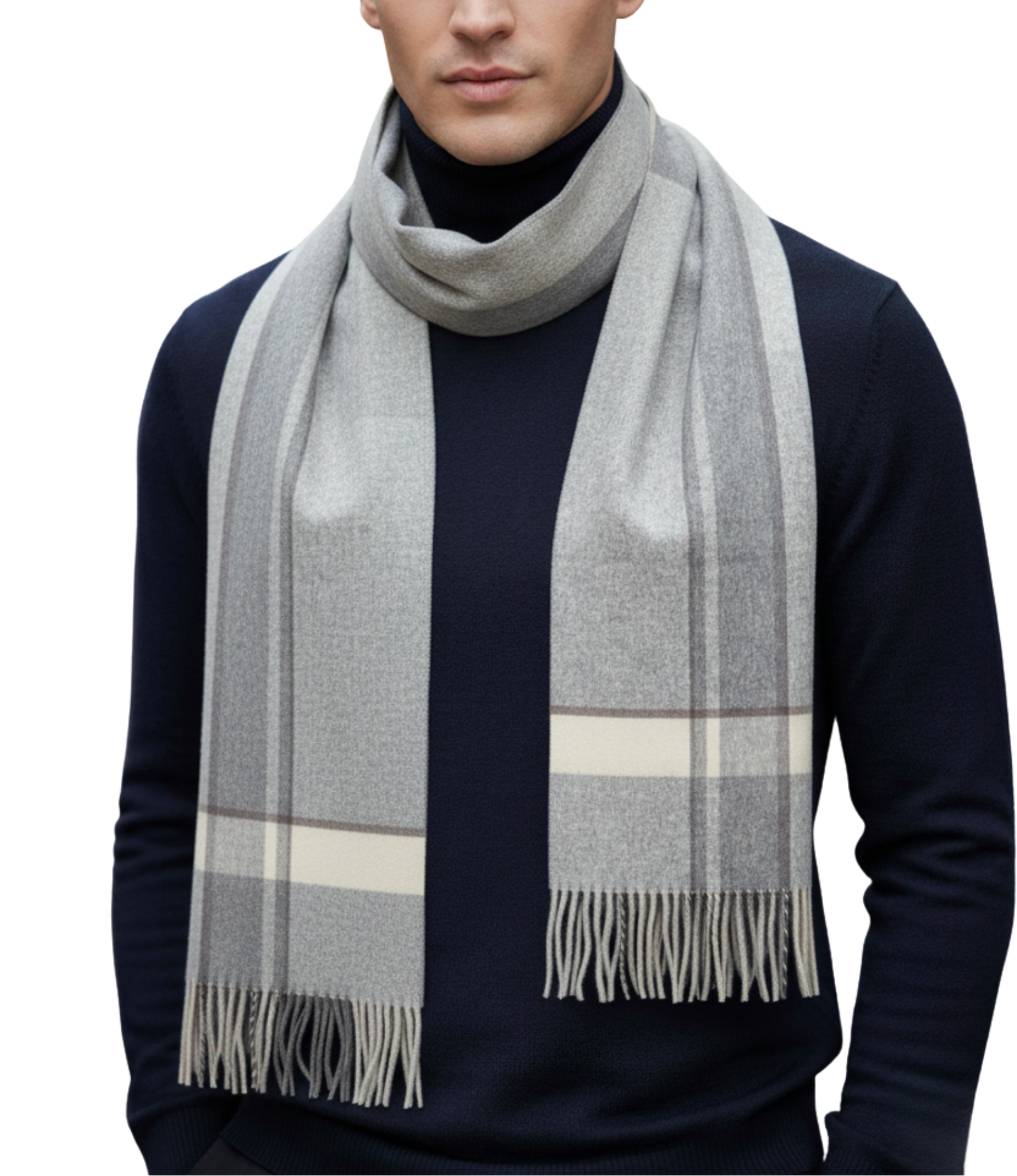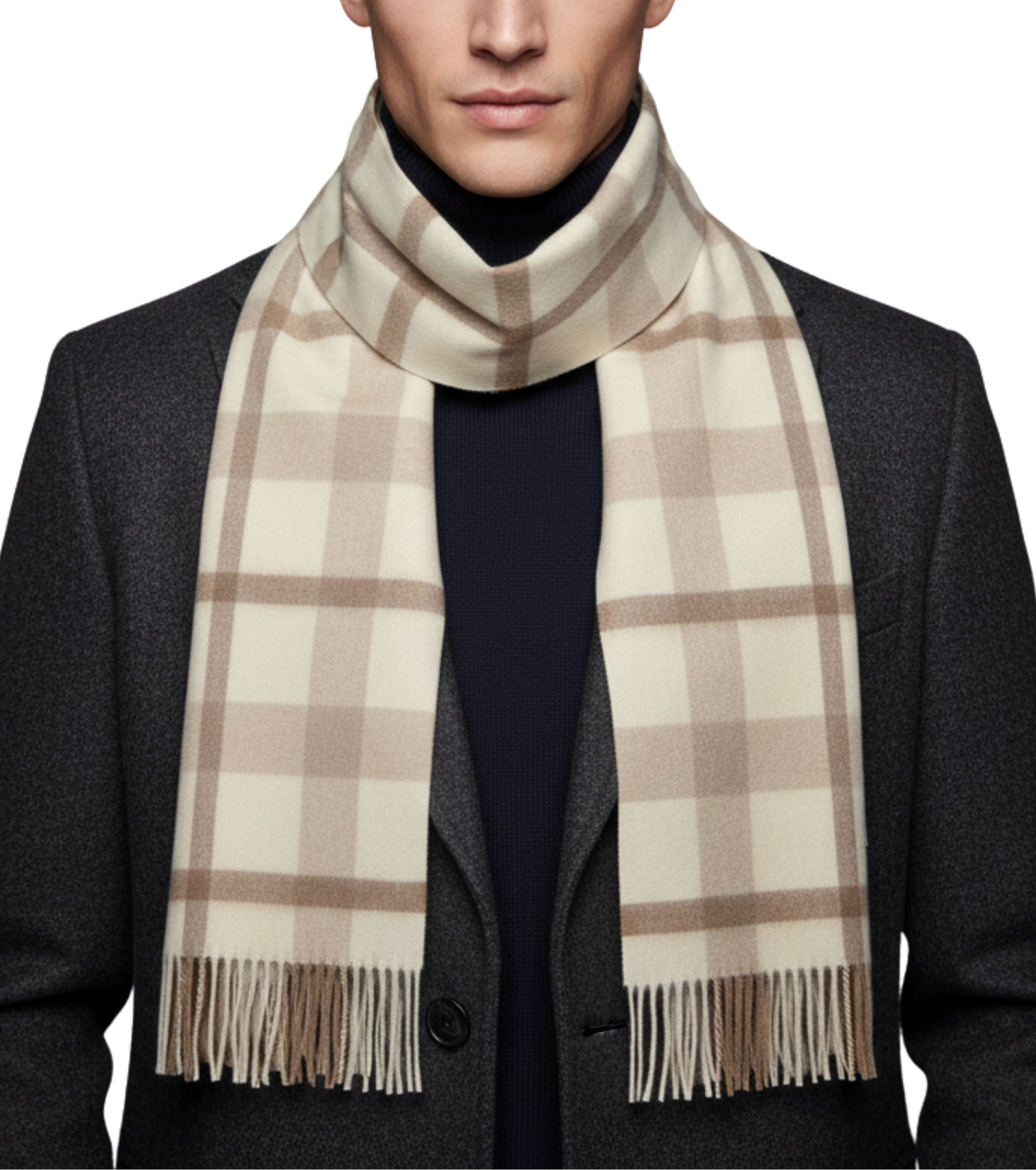 Tovaglia Mens Plaid Cashmere Fringe Scarf