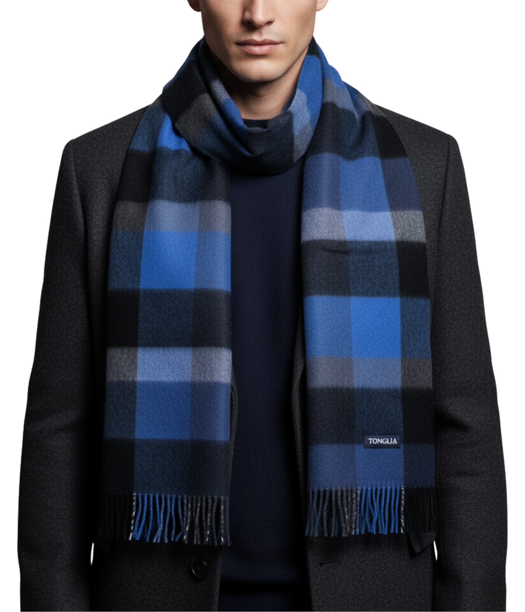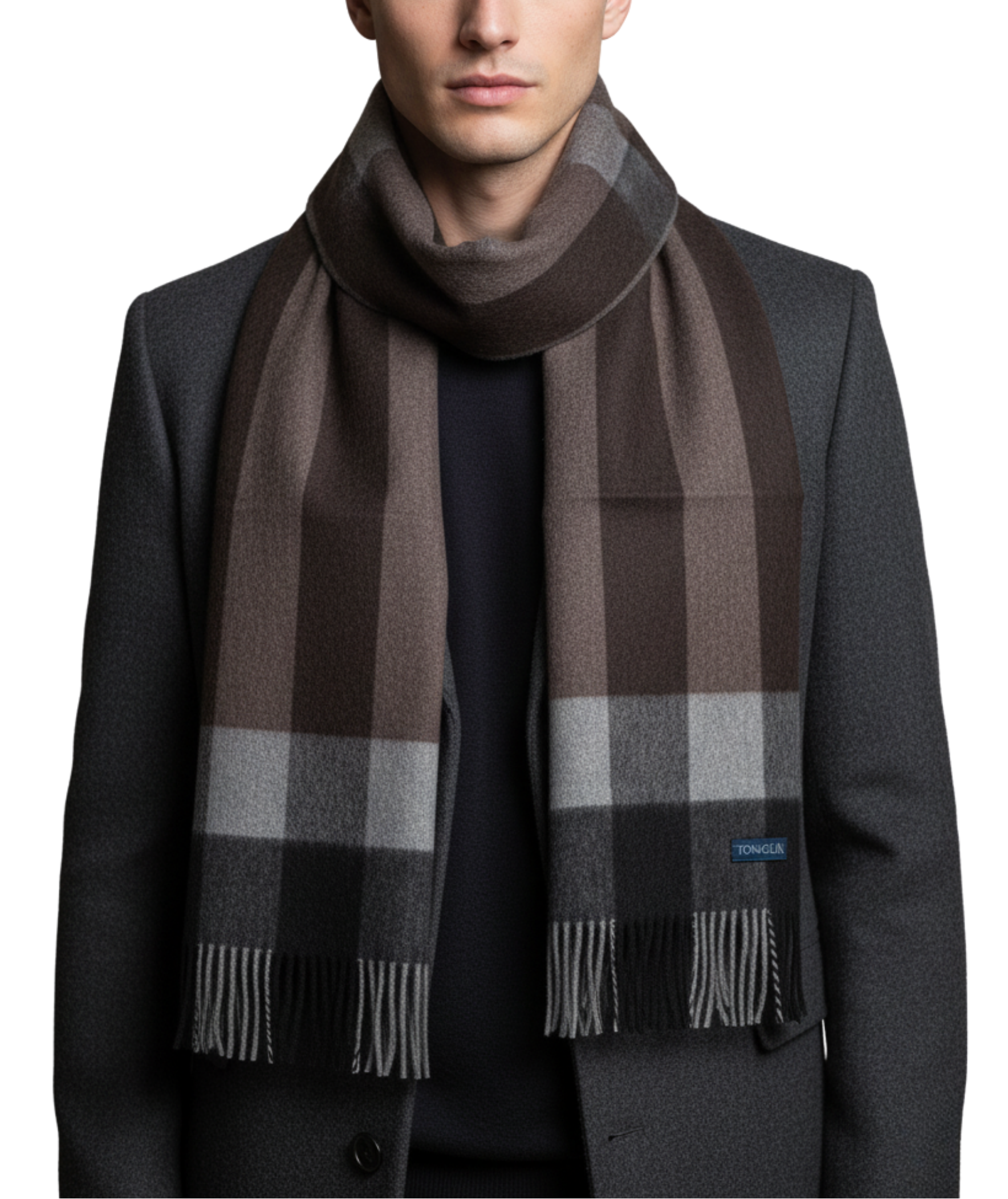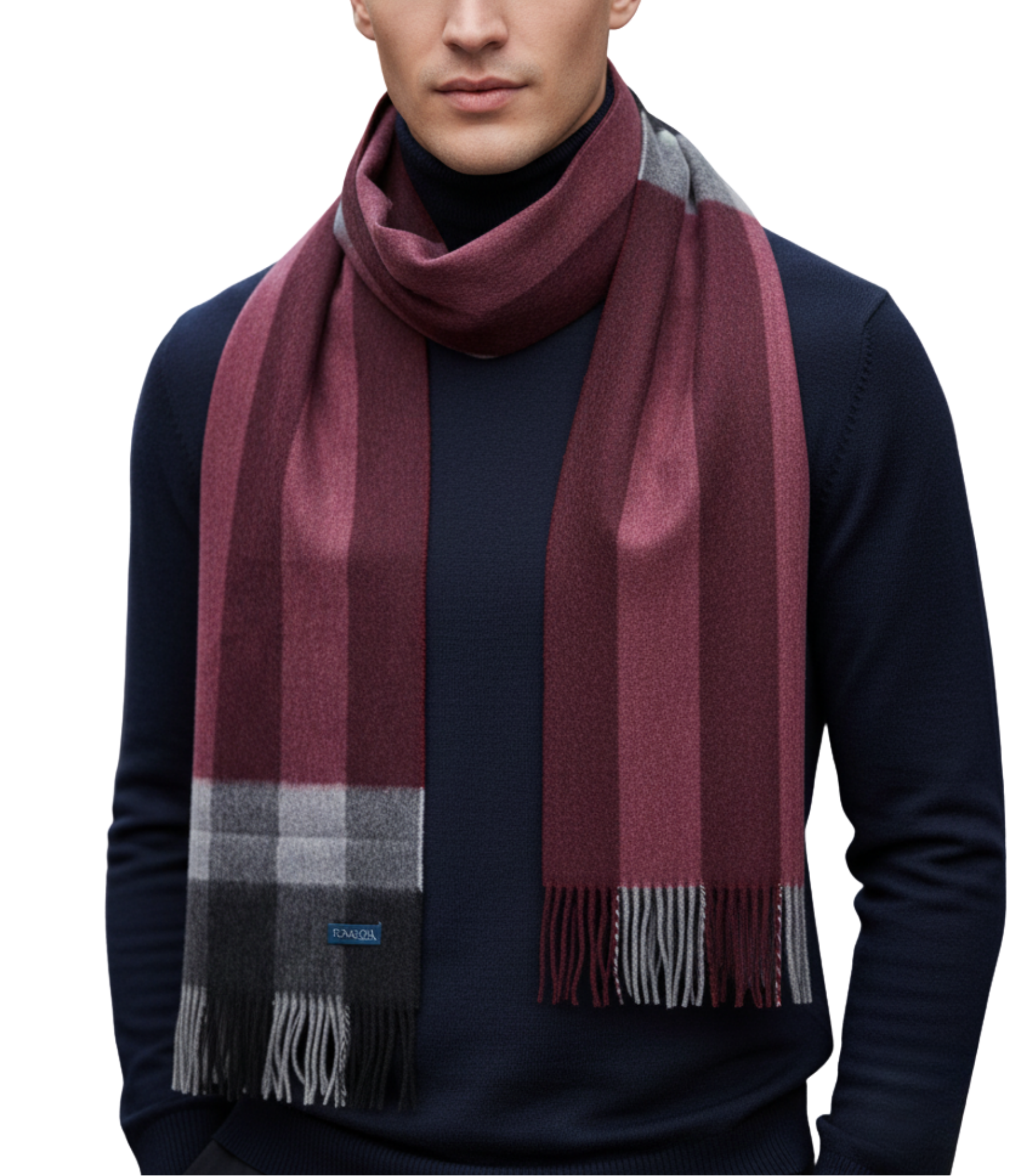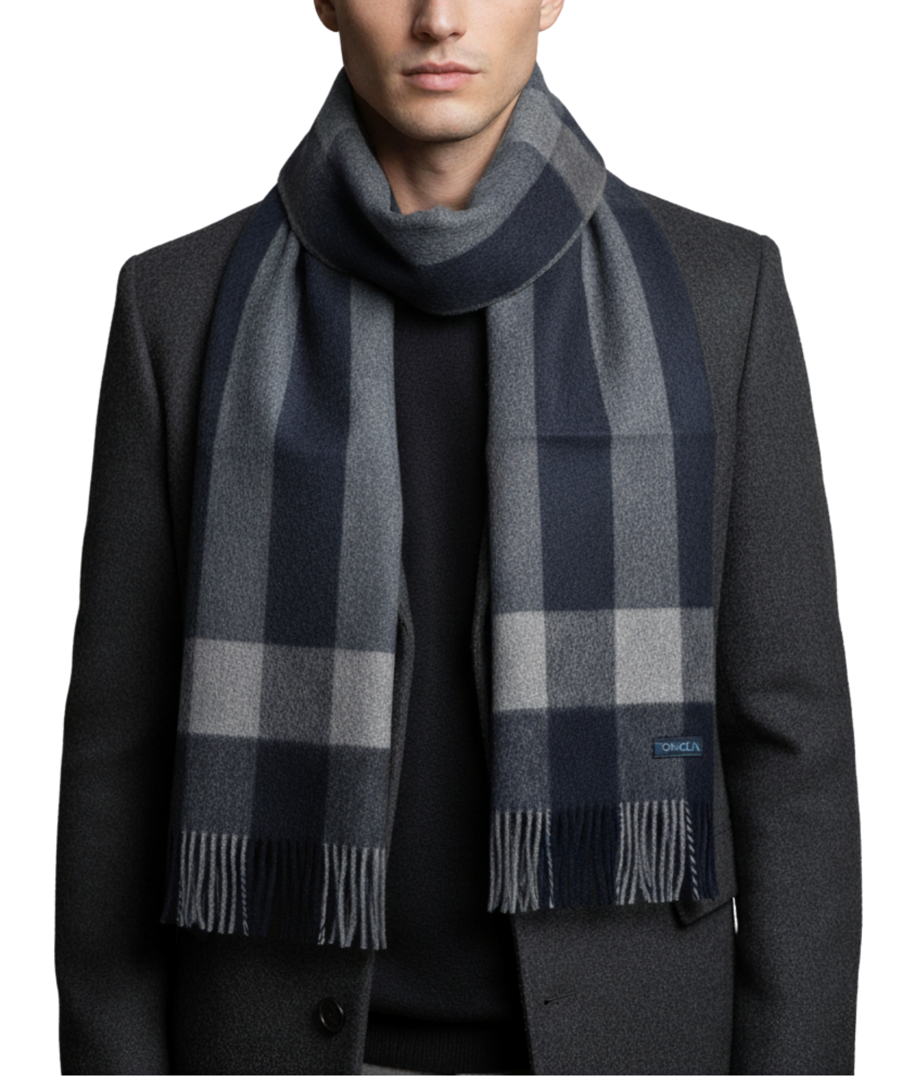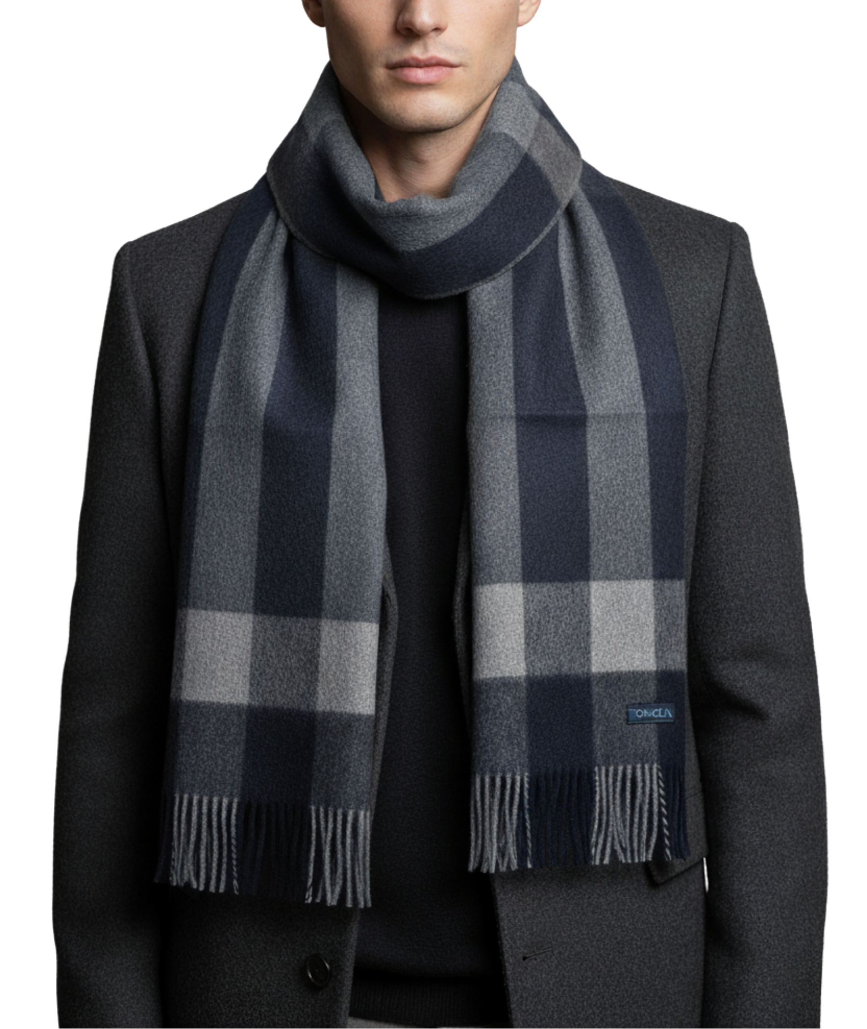 Tovaglia Mens Plaid Cashmere Fringe Scarf